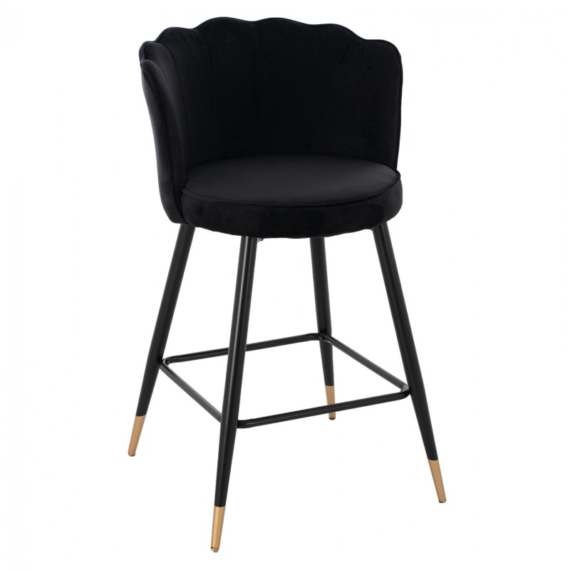 Σκαμπό για μπαρ με τετράγωνη πλάτη επενδυμένο με δερματίνη PU χρώματος μαύρο.