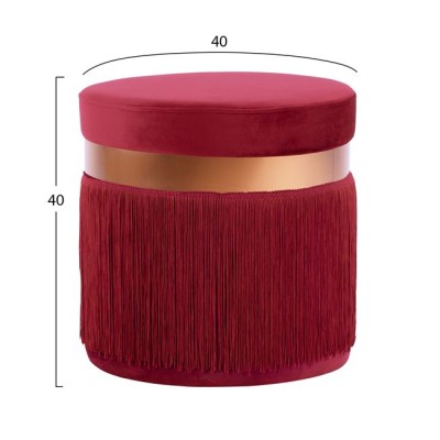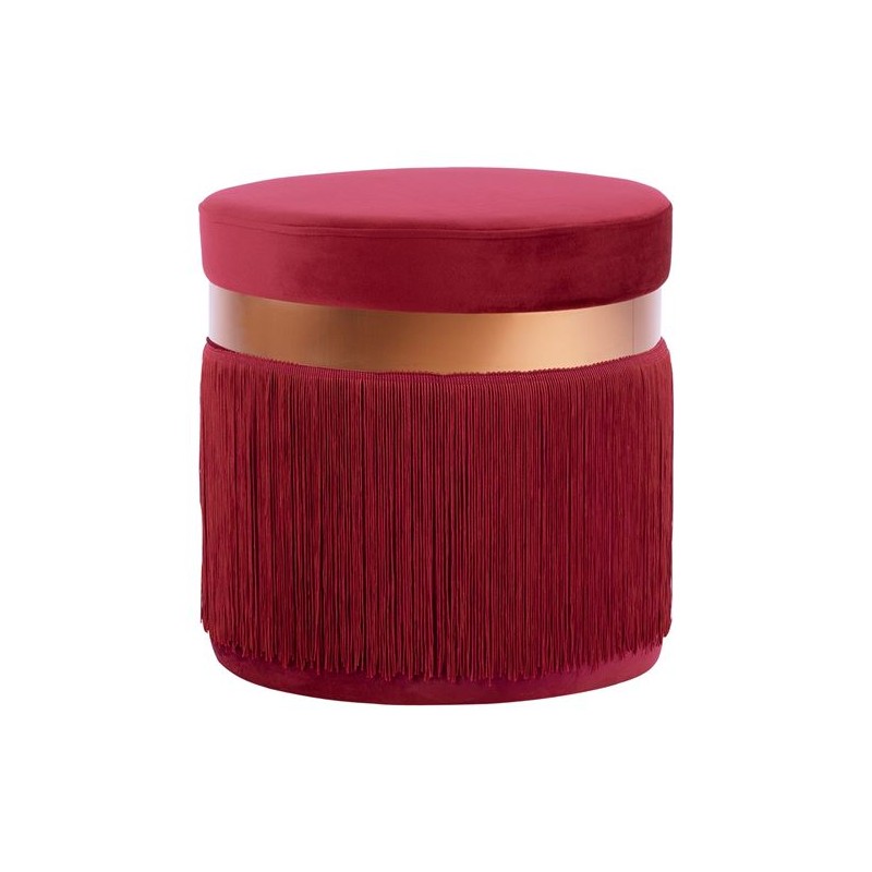 Σκαμπό από βελούδο, με κρόσσια σε απόχρωση κόκκινου Βουργουνδίας και χρυσό δαχτυλίδι.