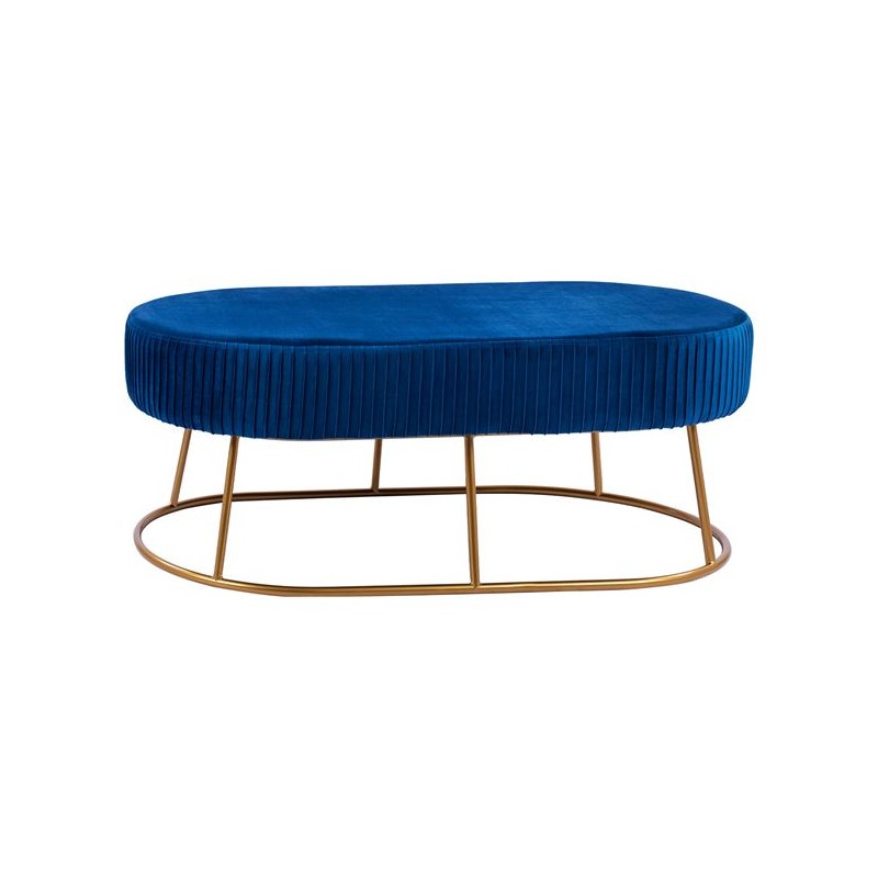 Σκαμπό παγκάκι ALINAFE από βελούδο σε μπλε απόχρωση με μεταλλική βάση σε χρυσή απόχρωση.