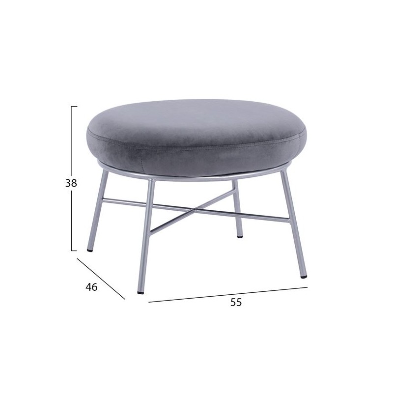 ΣΚΑΜΠΟ ΥΠΟΠΟΔΙΟ TRUDI HM8640.01 ΑΠΟ ΓΚΡΙ ΒΕΛΟΥΔΟ ΜΕ ΑΣΗΜΙ ΒΑΣΗ 55x46x38Υ εκ.