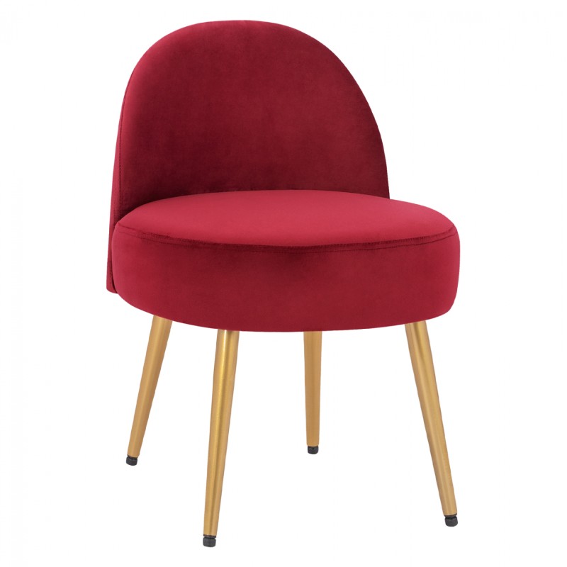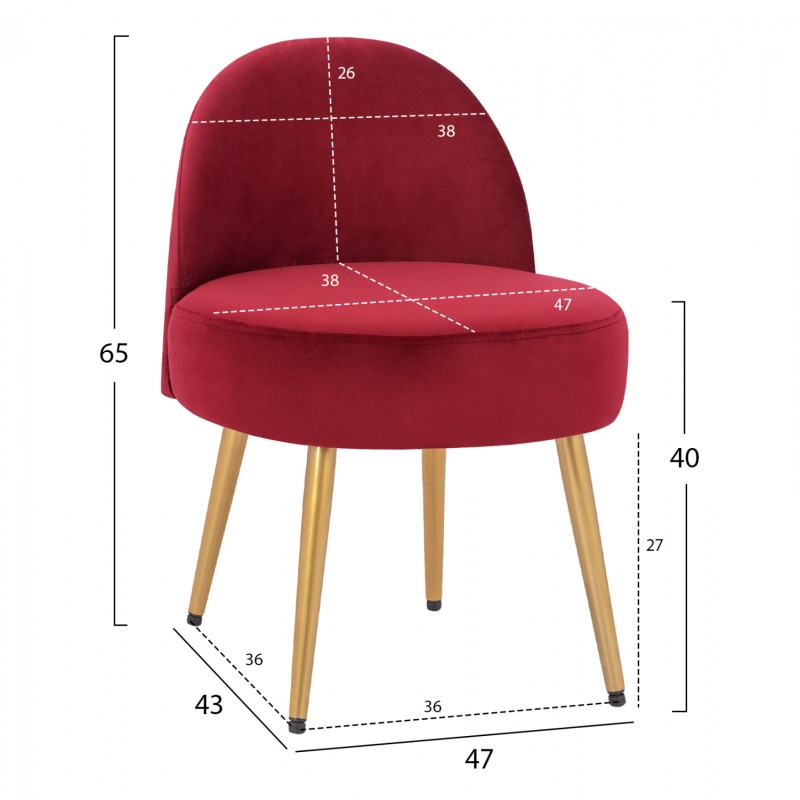 Σκαμπό με πλάτη YASMINE από βελούδο σε κόκκινη απόχρωση με μεταλλικά χρυσά πόδια.