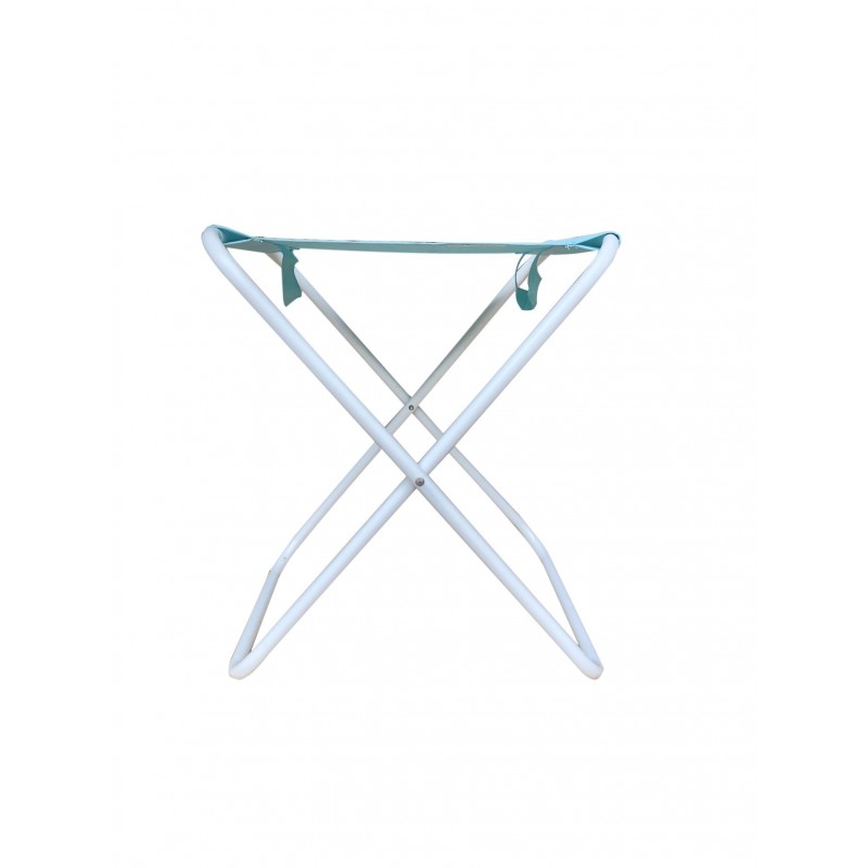 Πάνινο σκαμπό μεταλλικό πτυσσόμενο με χειρολαβή σε χρώμα σιέλ με άσπρο.