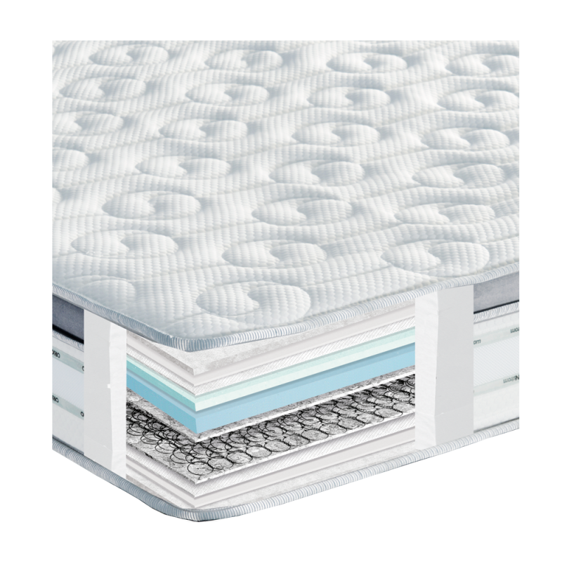 Ύφασμα /Fabric Best 1A Βάτα / Wadding Polyester 150gr/m2 Αφρώδες Ρολού / Foam Roll Νο 200 - 0,5 cm Non-woven G 30 ΜΟΝΟ ΕΠΑΝΩ - Memory Gel 2 cm ΜΟΝΟ ΕΠΑΝΩ - Αφρώδες / Foam Νο 300 - 3 cm Πεπιεσμένος Λευκός Κετσές / Felt 1000gr/m2 Ελατήρια Bonnell/Bonnell Springs Περιμετρική στήριξη από αφρώδες / Foam Support Νο 250 Φάσα με χερούλια και εξαεριστικά και με 3D και 2 κορδέλες Pillowtop / 2 Tapes 3D Border with handles and ventilators Πεπιεσμένος Λευκός Κετσές / Felt 1000gr/m2 Non-woven G 30 Αφρώδες Ρολού / Foam Roll Νο 200 - 0,5 cm Βάτα / Wadding Polyester 150gr/m2 Ύφασμα /Fabric Best 1A