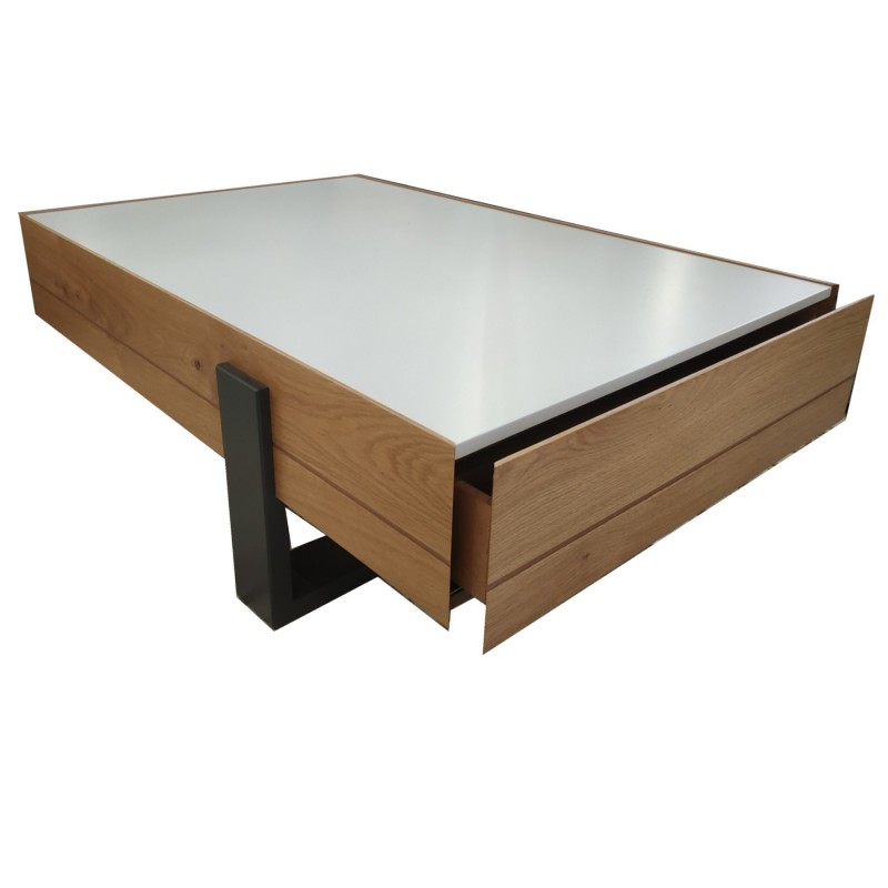 Τραπέζι σαλονιού με τρία χρώματα λευκό γκρι φυσικό με συρτάρι με μηχανισμό φρένου κατασκευασμένο από ξύλο δρυς με δυνατότατη αλλαγής χρώματος και διαστάσεων ( με εξτρά χρέωση )