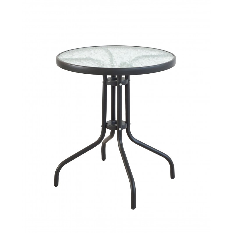Τραπέζι εξωτερικου χώρου στρογγυλό 60αρι κατασκευασμένο από μεταλλικό σκελετό επενδυμένο με ηλεκτροστατική βαφή ανθεκτικό σε κάθε καιρική συνθήκη σε γκρι χρώμα και γυάλινη επιφάνεια από τζάμι ασφαλείας που έχει υποστεί θερμική επεξεργασία (ώστε να μη θρυμματίζεται)πάχους 5mm. Μία διαχρονική επιλογή που ταιριάζει με κάθε είδους διακόσμηση.