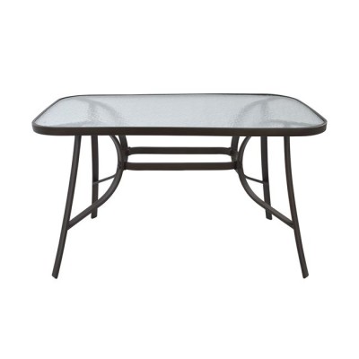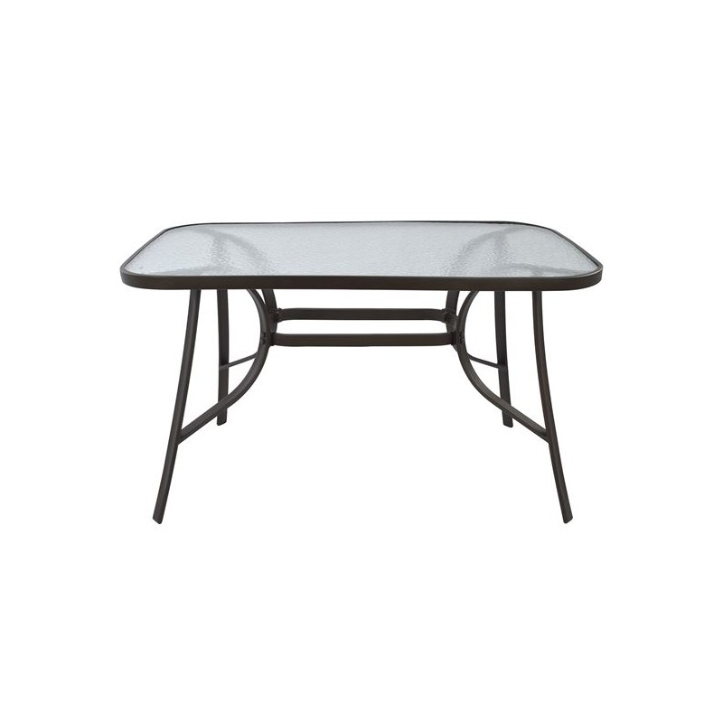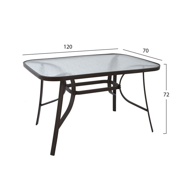 Τραπέζι τετράγωνο 70cm*70cm από ενισχυμένο μεταλλικό σκελετό σε καφέ χρώμα και με γυάλινη επιφάνεια από θερμικά επεξεργασμένο τζάμι ασφαλείας.