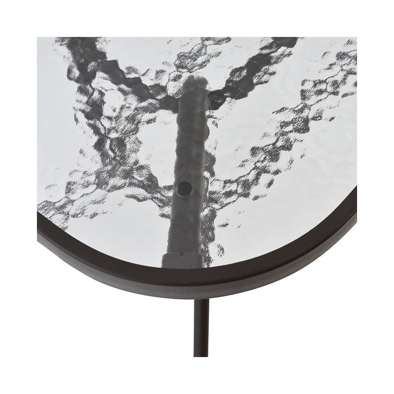 Τραπέζι στρογγυλό 60αρι από ενισχυμένο μεταλλικό σκελετό σε γκρι χρώμα και γυάλινη επιφάνεια από θερμικά επεξεργασμένο τζάμι ασφαλείας