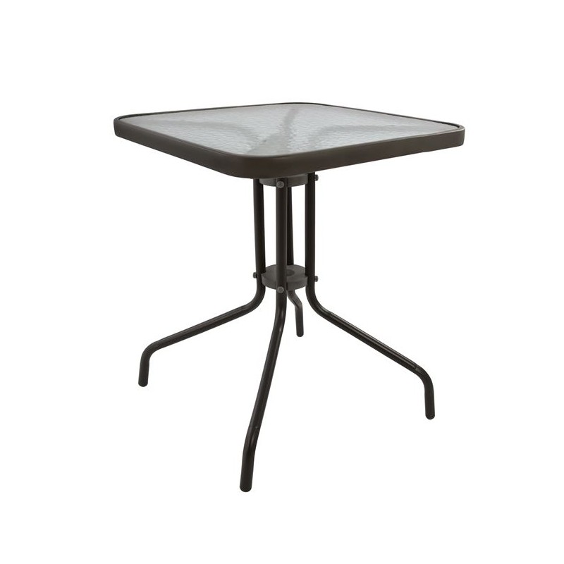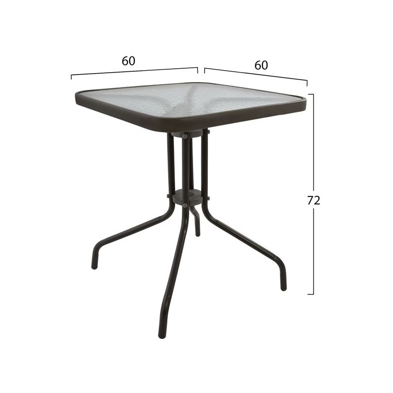 Τραπέζι πτυσσόμενο τετράγωνο μαύρο μεταλλικό σκελετό και μαύρο τζάμι ασφάλειας εξωτερικού χώρου 60x60x70 cm