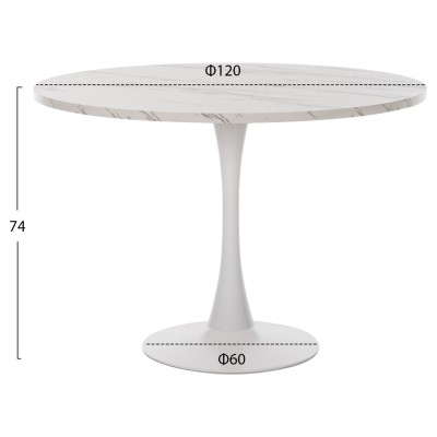 ΤΡΑΠΕΖΙ ΣΤΡΟΓΓΥΛΟ MARBEL1 ΑΠΟ MDF MΕ ΣΔΕΔΙΟ ΓΚΡΙ ΜΕ ΑΣΠΡΟ ΜΑΡΜΑΡΟ ΜΕ ΜΕΤΑΛΛΙΚΗ ΒΑΣΗ Φ100x78Υ εκ.