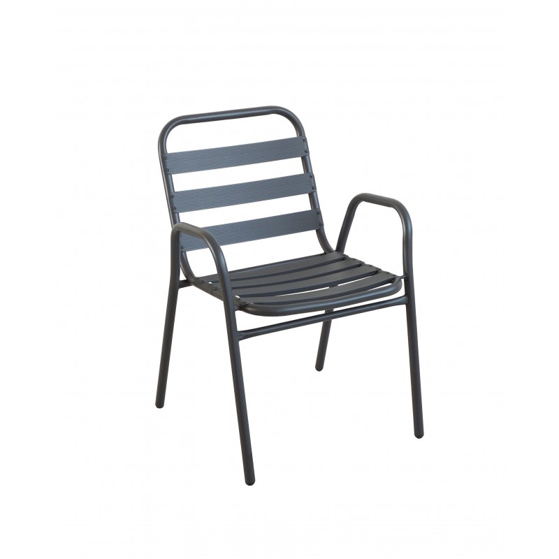 Τέσσερις πολυθρόνες εξωτερικού χώρου. Ο σκελετός της είναι κατασκευασμένος από μέταλλο η πλάτη και το κάθισμα ειναι από αλουμίνιο σε γκρι χρώμα.