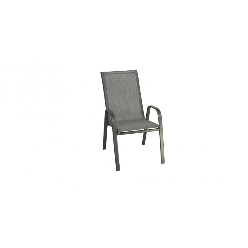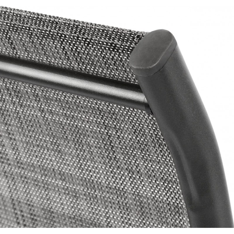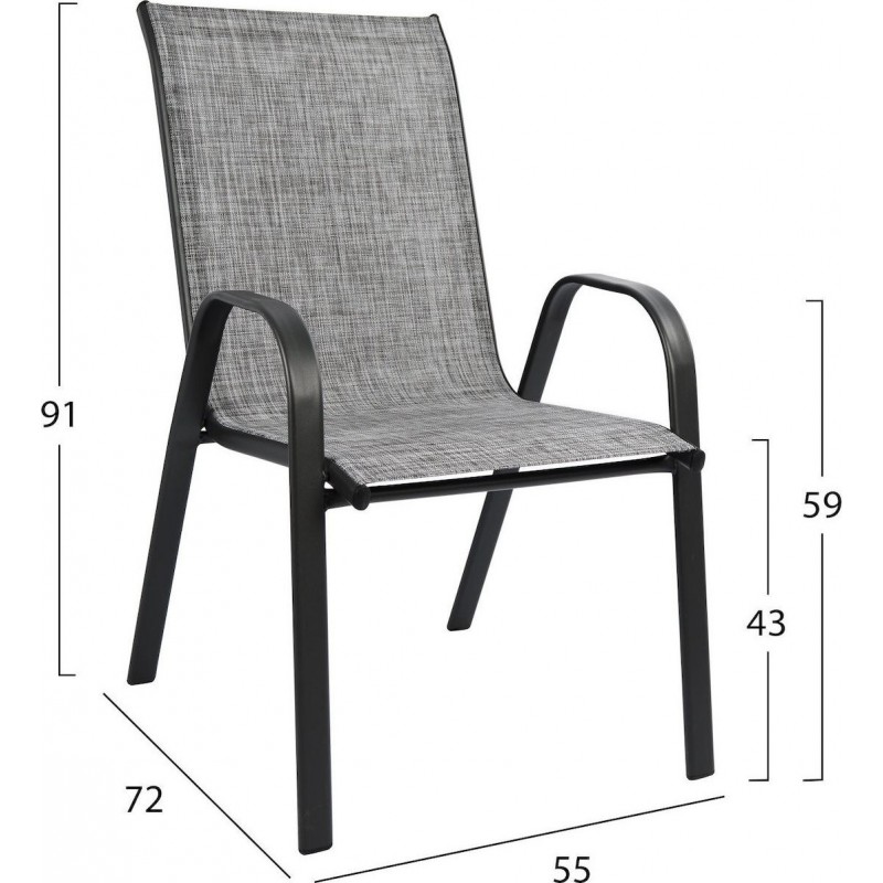 Τέσσερις πολυθρόνες εξωτερικού χώρου από μεταλλικό σκελετό σε γκρι χρώμα με textilene 2x1 μεγάλης αντοχής σε ήλιο και βροχή.