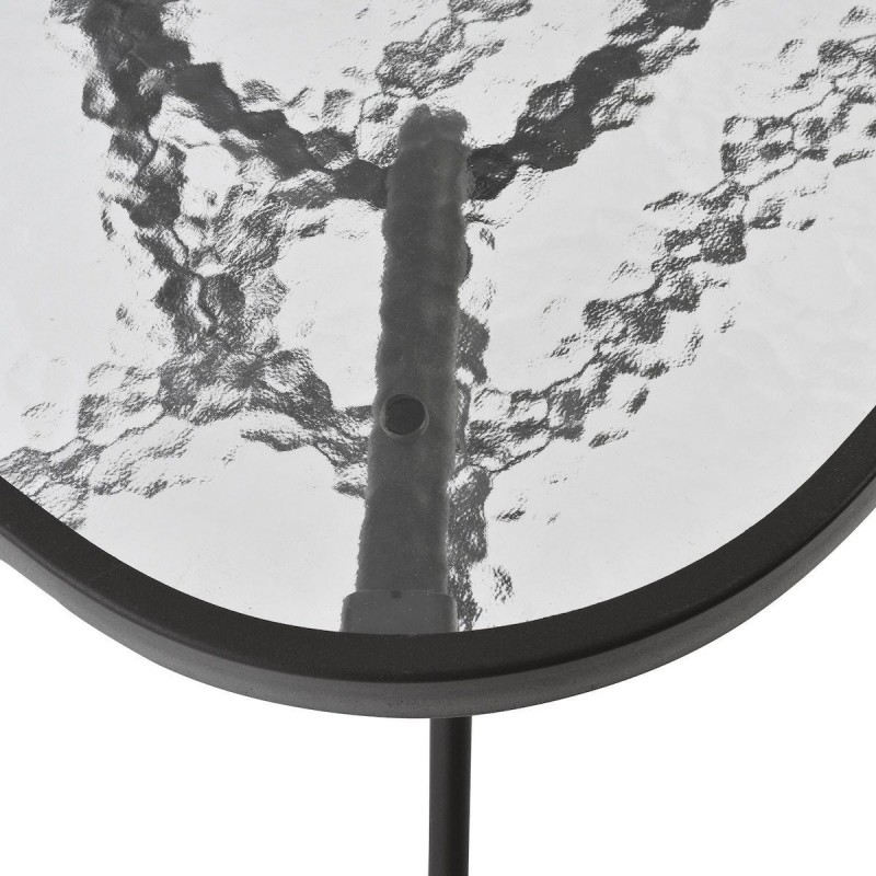 Ένα τραπέζι μεταλλικό εξωτερικού χώρου σε χρώμα γκρι ανθρακί, με ενσωματωμένο τζάμι ασφαλείας (secure).