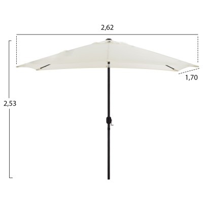 Τέλος, η ομπρέλα έχει ύφασμα σε ΜΠΕΖ χρώμα, είναι ανακλινόμενη και διαθέτει αναβατόριο για εύκολο άνοιγμα και κλείσιμο, αλλά και αεραγωγό για καλύτερη κυκλοφορία του αέρα.