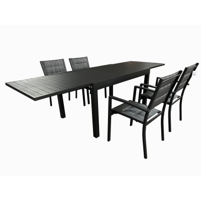 Σετ κήπου επεκτεινόμενο 5τμχ αλουμινίου πολυθρόνες στοιβαζομενες σε ανθρακί χρώμα HYT-068AL 135/270x90x76εκ