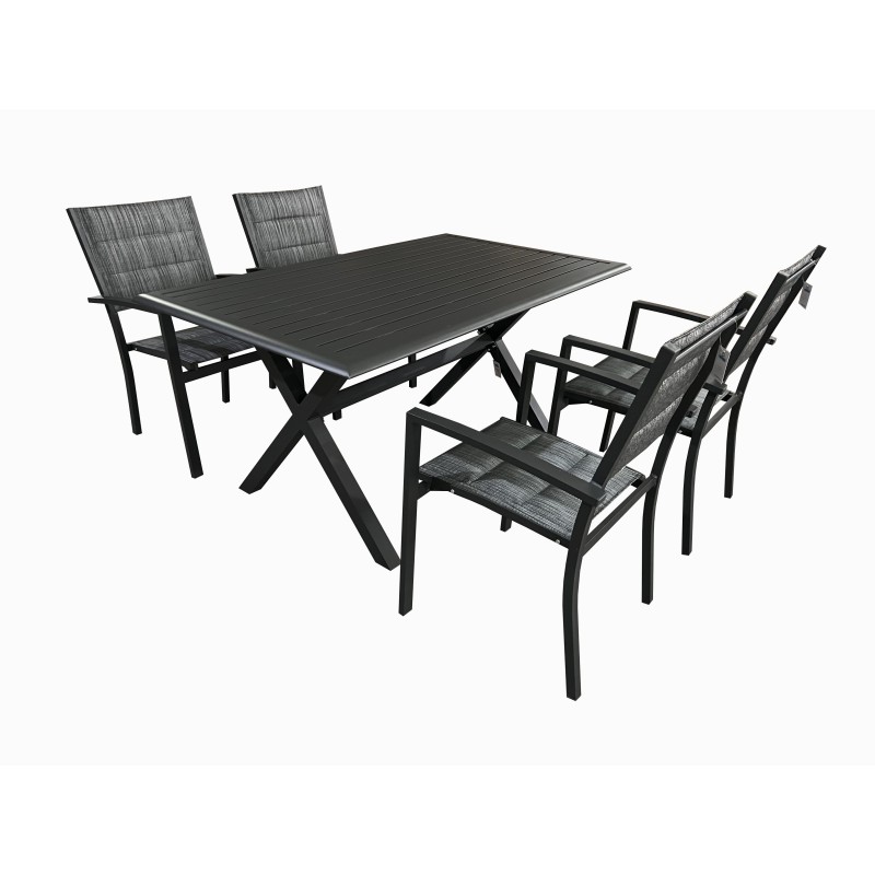 Σετ κήπου 5τμχ αλουμινίου πολυθρόνες στοιβαζομενες με διπλό διάτρητο ανθρακί HYT-0148 150x90x72εκ