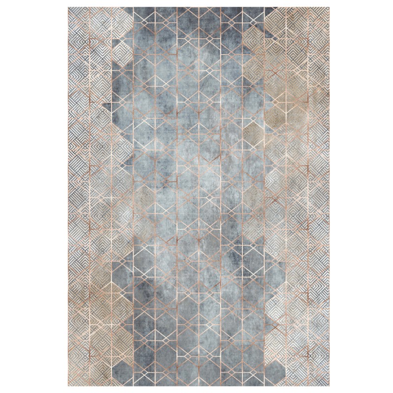 Αυτό το χαλί έχει κυψελοειδή όψη σε κατακόρυφη διάταξη σε μπεζ χρώμα επάνω σε γκριζωπό φόντο και σίγουρα θα αποτελέσει αντικείμενο συζητήσεων στο σαλόνι σας. ’λλωστε, η γοητεία πού ασκεί το χαλί είναι τόσο δυνατή, πού κανένα δεν αφήνει αδιάφορο. Δίνει μοντέρνα όψη στο πάτωμά σας, χωρίς υπερβολές.