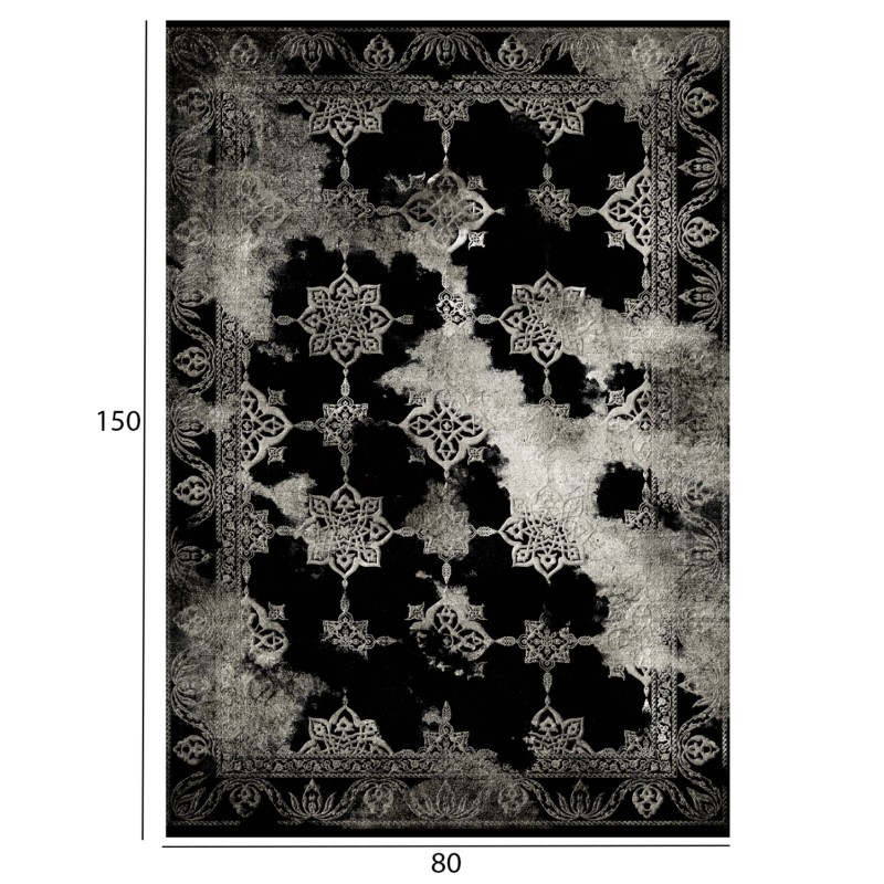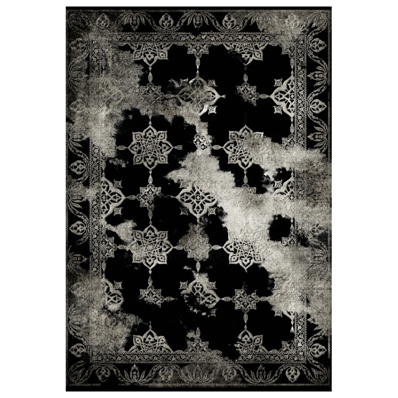 Αυτό το χαλί έχει κυρίαρχο χρώμα φόντου το ΜΑΥΡΟ, με ευδιάκριτη λουλουδάτη μπορντούρα αλλά και ευδιάκριτα σχέδια στο κέντρο παρά το γεγονός ότι το γενικότερο στυλ του χαλιού παραπέμπει σε ξεβαμμένη τοιχογραφία και σίγουρα θα αποτελέσει αντικείμενο συζητήσεων στο σαλόνι σας. ’λλωστε, η γοητεία πού ασκεί το χαλί είναι τόσο δυνατή, πού κανένα δεν αφήνει αδιάφορο. Δίνει μοντέρνα όψη χωρίς υπερβολές, «παντρεύοντας» ένα κλασικό σχέδιο με το «ξεβαμμένο» στυλ.