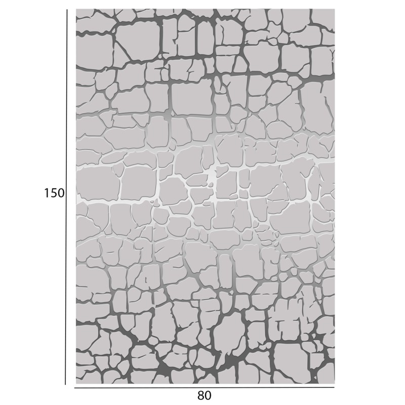 Αυτό το χαλί έχει την όψη αποξηραμένου χώματος με τις «ραγάδες» του και τα ακανόνιστα σχήματα σε ΑΣΗΜΟΓΚΡΙΖΩΠΕΣ αποχρώσεις. Σίγουρα πάντως, θα αποτελέσει αντικείμενο συζητήσεων στο σαλόνι σας. ’λλωστε, η γοητεία πού ασκεί το χαλί είναι τόσο δυνατή, πού κανένα δεν αφήνει αδιάφορο και όλοι θα προσπαθούν να «δουν» και να αντιληφθούν το pattern. Προφανέστατα, λοιπόν, αυτό το χαλί αποτελεί μια μοντέρνα πρόταση για το πάτωμά σας, χωρίς υπερβολές.