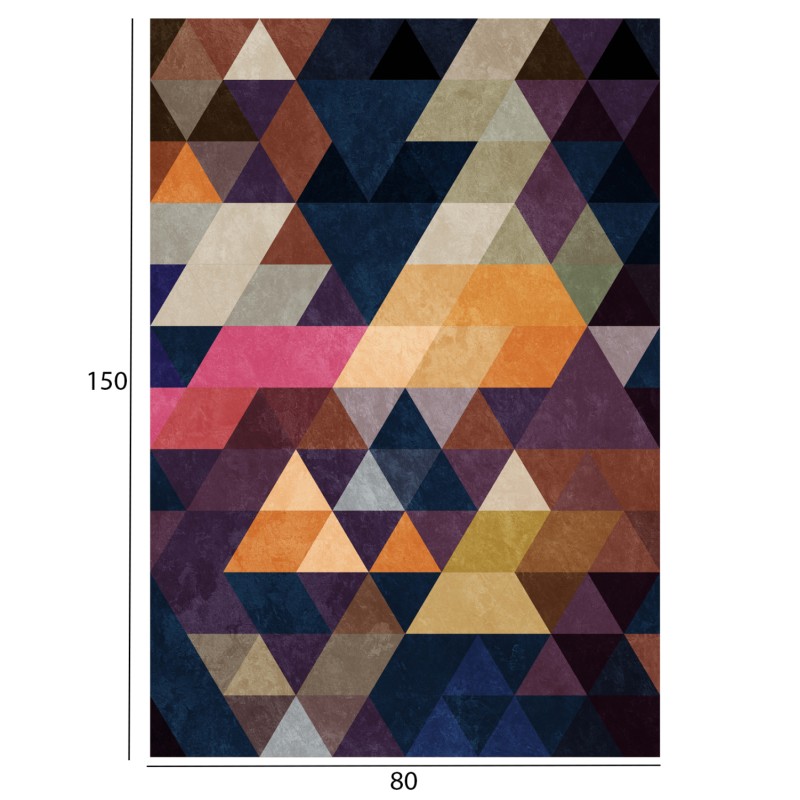 Αυτό το χαλί έχει σχέδιο με πολυάριθμα ισοσκελή τρίγωνα σε πάρα πολλά χρώματα. Σίγουρα, θα αποτελέσει αντικείμενο συζητήσεων στο σαλόνι σας. ’λλωστε, όλοι θα προσπαθούν να «δουν» και να μετρήσουν τα τρίγωνα. Προφανέστατα, λοιπόν, αυτό το χαλί αποτελεί μια μοντέρνα πρόταση για το πάτωμά σας, χωρίς υπερβολές.