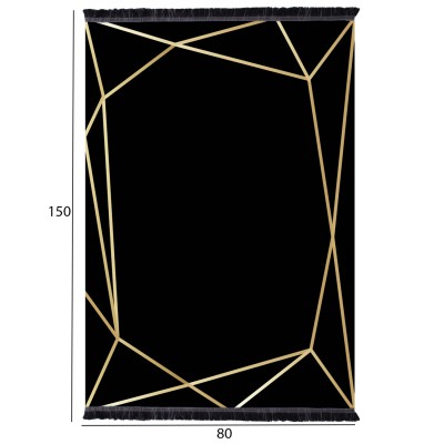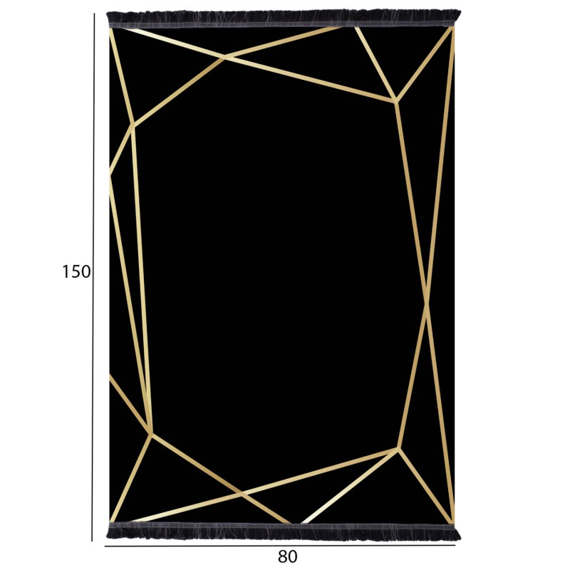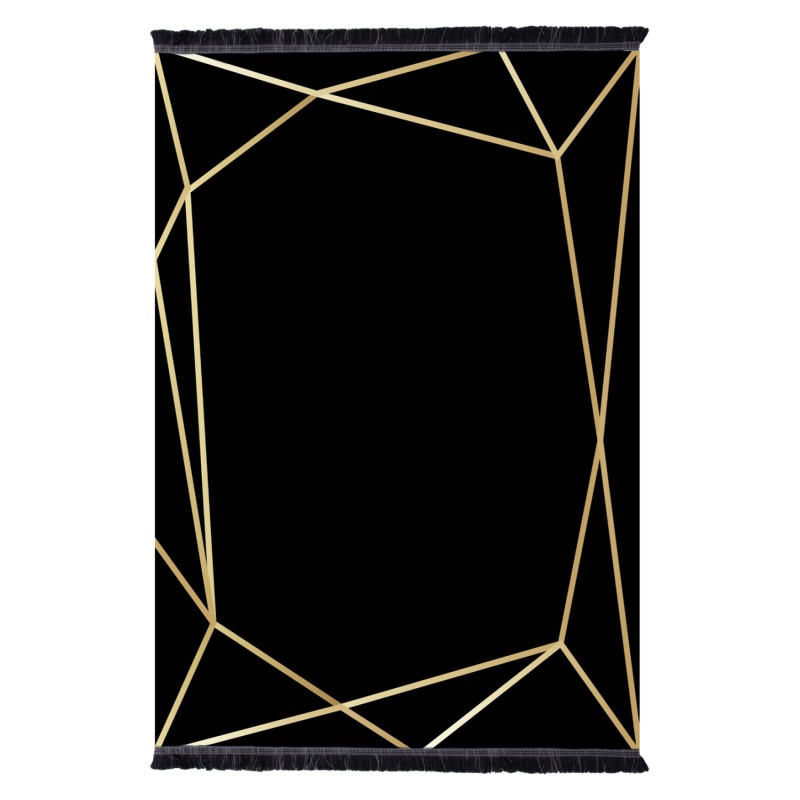 Το μοντέρνο αυτό χαλί, με μονόχρωμο φόντο σε μαύρο χρώμα και τριγωνικά σχέδια στην μπορντούρα σε χρυσό χρώμα θα αποτελέσει αντικείμενο συζητήσεων στο σαλόνι σας. ’λλωστε, η γοητεία πού ασκεί το χαλί είναι τόσο δυνατή, πού κανένα δεν αφήνει αδιάφορο.