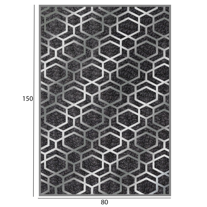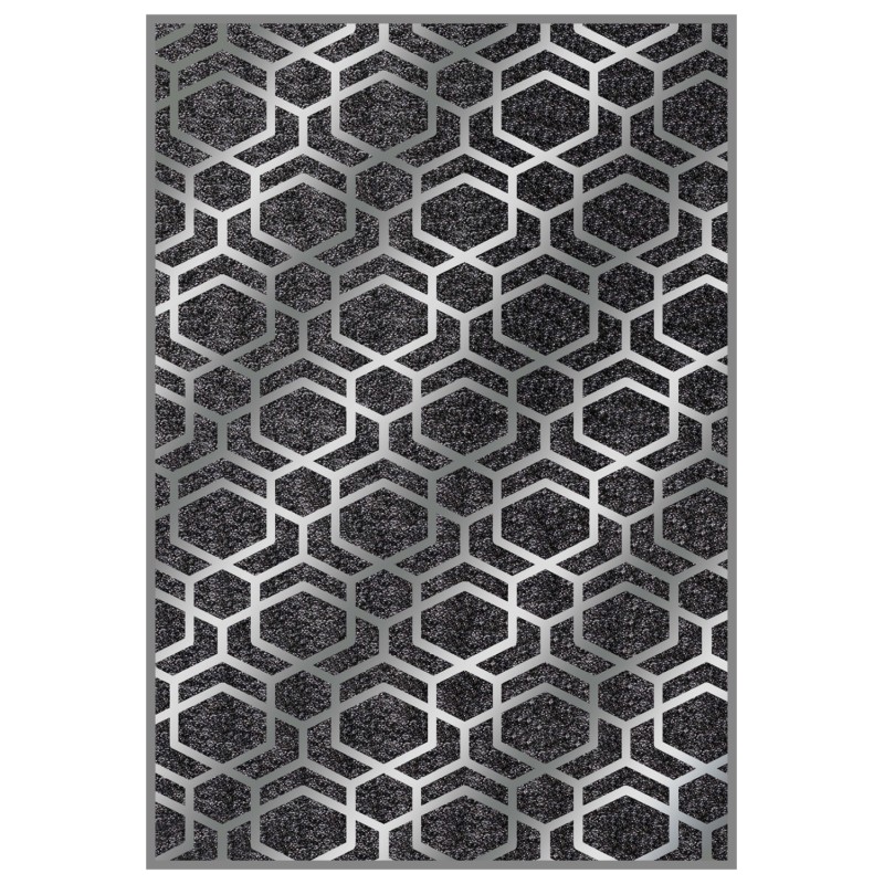 Το μοντέρνο αυτό χαλί διαθέτει φόντο σε ΓΚΡΙ χρώμα και κυψελωτό σχέδιο σε όλη την επιφάνεια του χαλιού σε ΑΣΗΜΙ χρώμα, όπως ΑΣΗΜΙ είναι και η μπορντούρα του χαλιού. Η αίσθηση της συμμετρίας που δίνει αυτό το χαλί αιχμαλωτίζει το βλέμμα και ερεθίζει τη φαντασία, με αποτέλεσμα να μην μπορείς να πάρεις τα μάτια σου μακριά από αυτό το χαλί. ’λλωστε, η γοητεία πού ασκεί το χαλί είναι τόσο δυνατή, πού κανένα δεν αφήνει αδιάφορο.