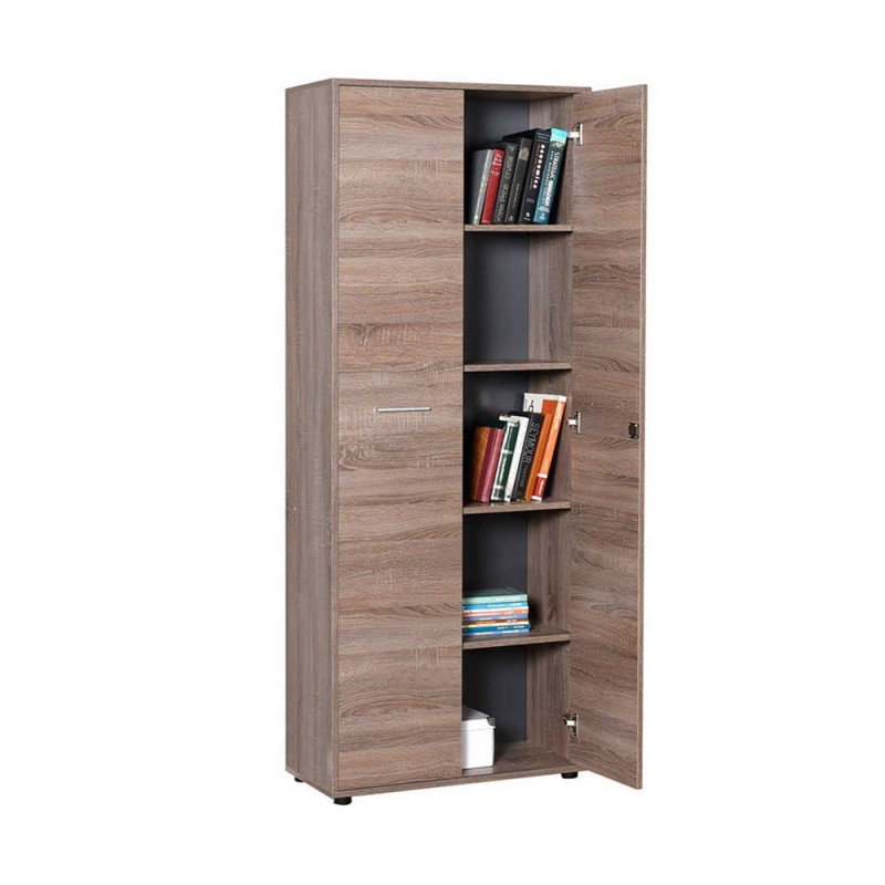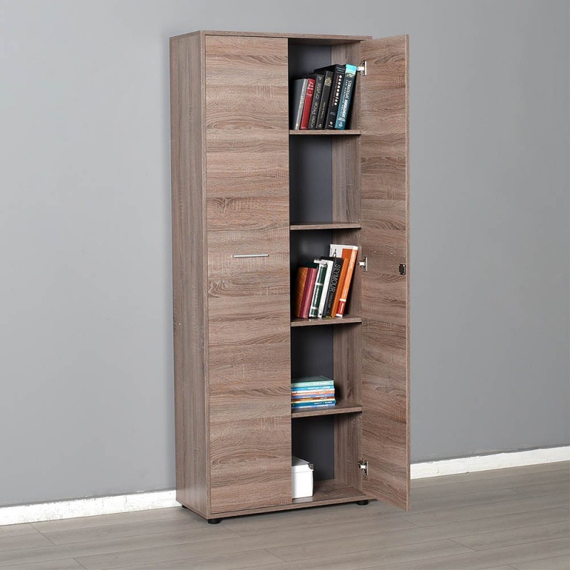 Ντουλάπι βιβλιοθήκη γραφείου 2φηλη με κλειδαριά και ράφια σταχτί χρώμα 72x34x187 εκ