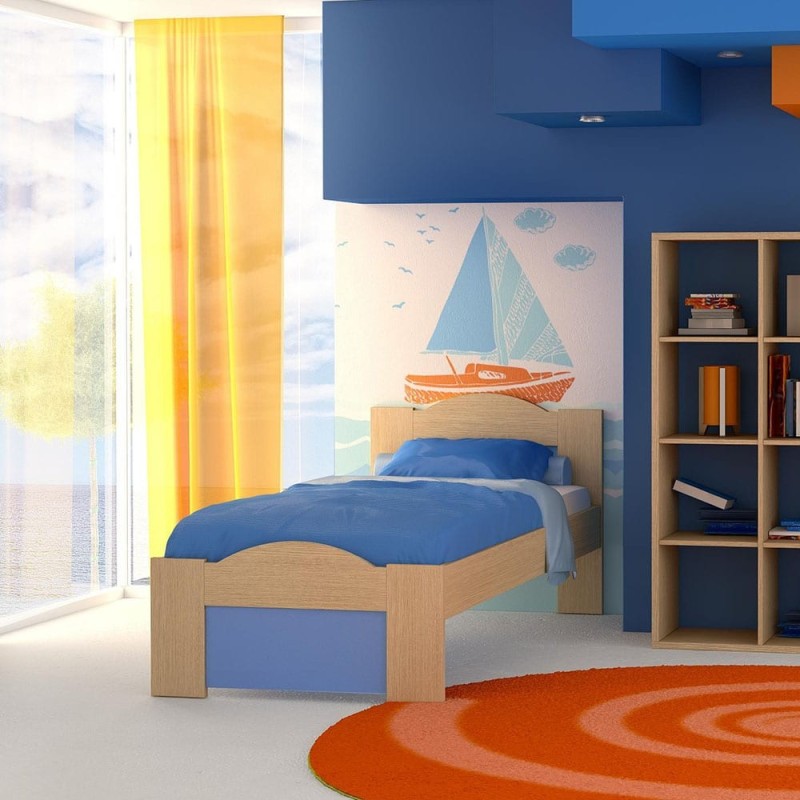 Κρεβάτι παιδικό "Κύμα" δρυς-σιέλ 110x200