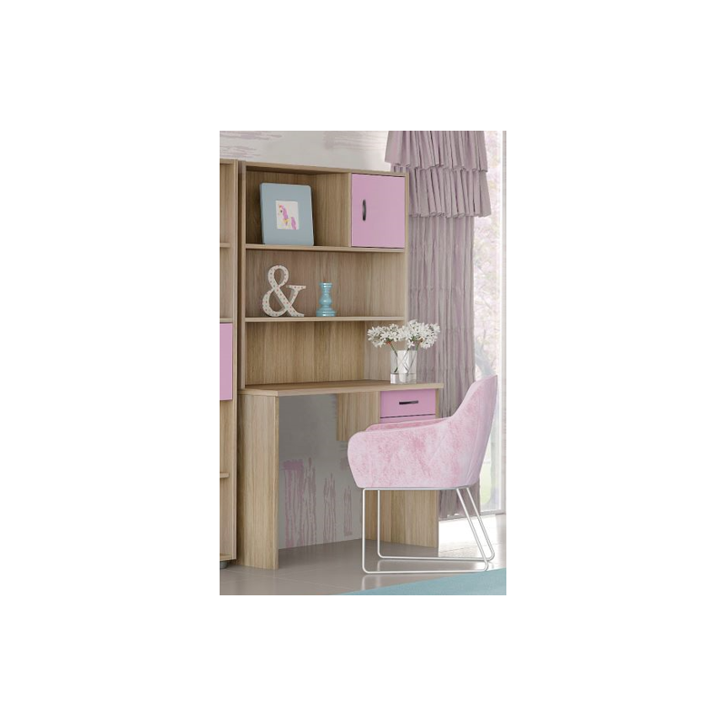 Γραφείο και εταζέρα από υψηλής ποιότητας μελαμίνη σε απόχρωση λάττε με μπλε.