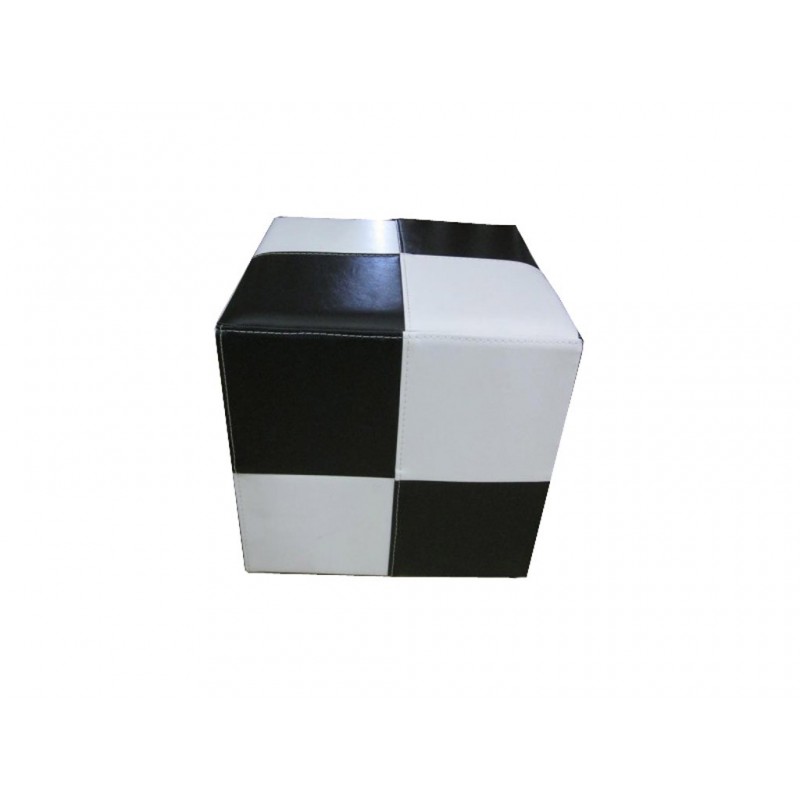 Σκαμπό ταμπουρέ σε λευκό με καφέ σκουρο χρώμα από τεχνόδερμα διαστάσεων 40*40*40εκ. με ροδάκια για εύκολη μεταφορά.